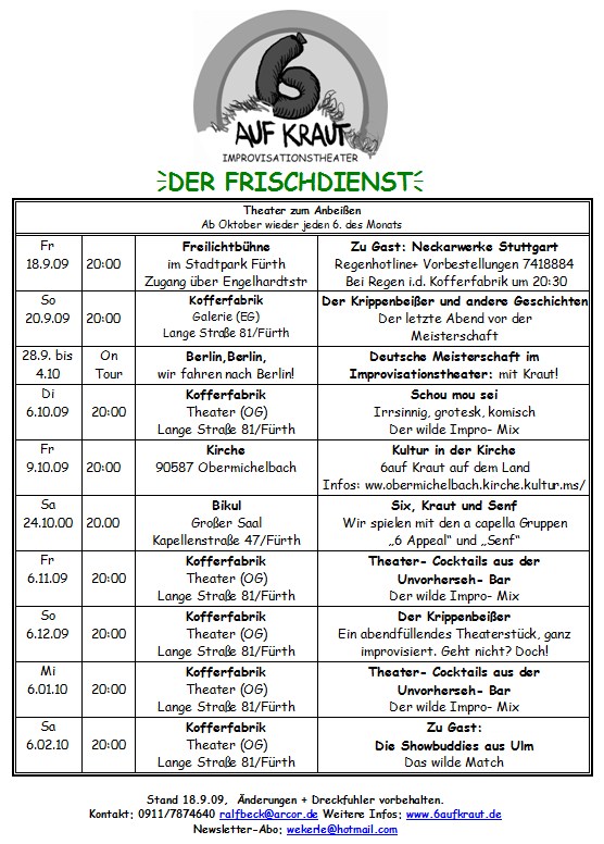 Offizielles Organ der Improvisationstheatergruppe „6 auf Kraut“ mit aktuellen Terminen |
