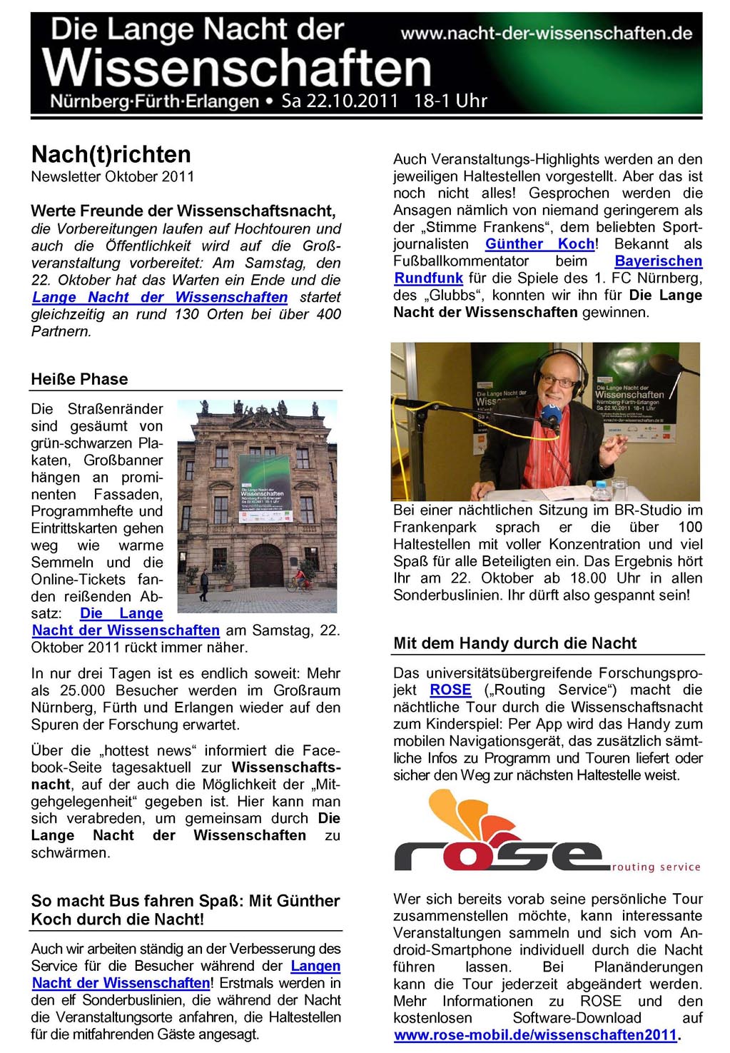 I.d.R. monatlicher Newsletter mit Neuigkeiten zur Wissenschaftsnacht |