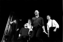 | Ach ja, apropos Theater: Im Jahr 2000 wurde ich zum Ehrenmitglied einer der ältesten deutschen Improtheatergruppen ernannt – „6 auf Kraut“; vermutlich meiner herausragenden Verdienste um die deutsche Improszene wegen oder so ähnlich. Auf jeden Fall konnte ich es kaum abwarten, das Ehrenhemd in Besitz zu nehmen. | |