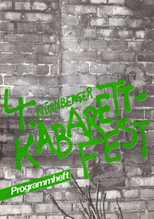 | Seit seiner Gründung im Jahr 1980 veranstaltete der Verein zur Förderung von Kunst und Kommunikation – kuk e.V. das „Nürnberger Kabarettfestival“, das er von der Nürnberger Kabarettgruppe Kläranlage übernommen hatte. Bei der vierten Auflage 1983 gab es 31 Auftritte an elf Orten. 1984 legte der kuk e.V. mit dem „Nürnberger Kunstmarkt“ eine neue Veranstaltungsreihe auf, bei der zum Motto „Feuer“ auch italienisches Straßentheater eingeladen wurde. Zwar wurde der geplanter Köhlerhaufen von den Behörden nicht genehmigt, doch dank der italienischen Künstler stand unversehens das Hans-Sachs-Denkmal in Flammen, was bei der Denkmalschutzbehörde nur bedingt humorvoll genommen wurde. Das Abschrubben der Brandflecke dauerte gefühlte zwei Wochen und ich bedauere den Vorgang bis heute. | |