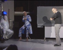 | Nach einem Vortrag von Prof. Dr. Hanns Ruder entstand beim Nachgespräch die Idee, das Theaterprojekt „Die KeplerKonferenz“ mit einer Veranstaltung des Sonderforschungsbereichs Transregio Gravitationswellenastronomie an der Universität Tübingen zu kombinieren. Dem Leiter der Öffentlichkeitsarbeit des SFBs, PD Dr. Hans-Peter Nollert, gefiel die Idee und so kam es, dass am 12.2.10 die Außerirdischen nach Tübingen zur „Interstellaren Begegnung – Kepler und die Folgen“ reisten. Diesmal waren aber auch drei Erdbewohner beteiligt und verdeutlichten, dass die Menschheit seit Keplers Zeiten doch einiges über das Universum herausbekommen hat. Die Wissenschaftler waren Prof. Dr. Karsten Danzmann, Prof. Dr. Harald Lesch und Prof. Dr. Hanns Ruder.